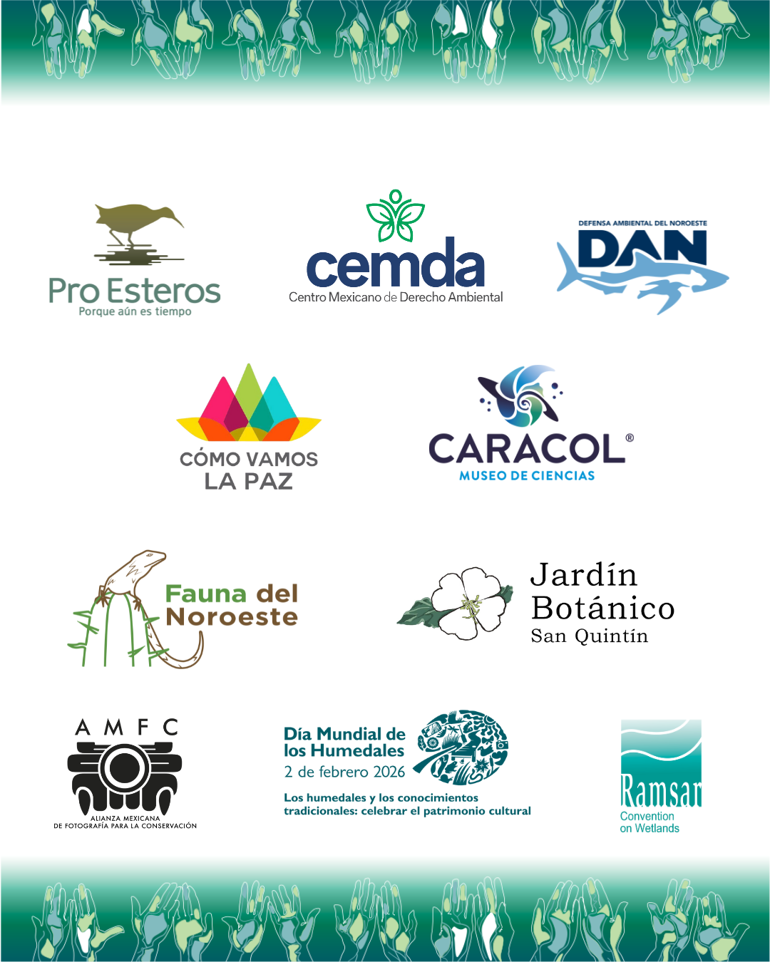 Estamos celebrando el 2 de febrero “Día Mundial de los Humedales”, es por eso que las instituciones Caracol Museo de Ciencias, Centro Mexicano de Derecho Ambiental (CEMDA), Cómo Vamos La Paz, Defensa Ambiental del Noroeste (DAN), Fauna del Noroeste, Jardín Botánico San Quintín y Pro Esteros, te invitamos a participar en el 12vo Concurso de Fotografía “Nuestros Humedales”, donde nos podrás mostrar a través de una imagen la belleza natural de estos lugares, así como la flora y fauna que los habitan.